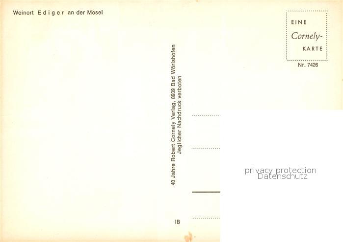 73176045 Ediger Mosel Panorama Moseltal Weinberge Kirche Inri Altstadt Fachwerkhaus Cornely Karte Nr 7426 postalisch nicht gelaufen Erhaltung siehe scans [FriedD77] KatCode: 11110007135024