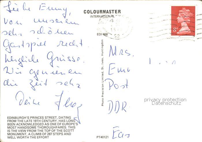 old postcard Edinburgh Scotland Princes Street from the Scott Monument postalisch gelaufen Erhaltung siehe scans