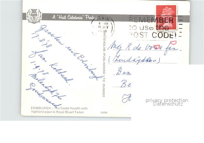 old postcard Edinburgh Scotland Schloss Dudelsack Schotte postalisch gelaufen Erhaltung siehe scans