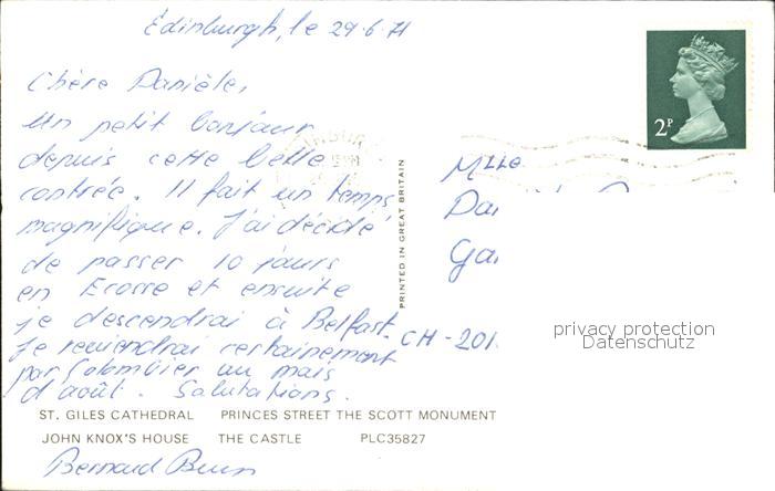 old postcard Edinburgh Scotland St. Giles Cathedral Princes Street Scott Monument John Knoxs House postalisch gelaufen Erhaltung siehe scans
