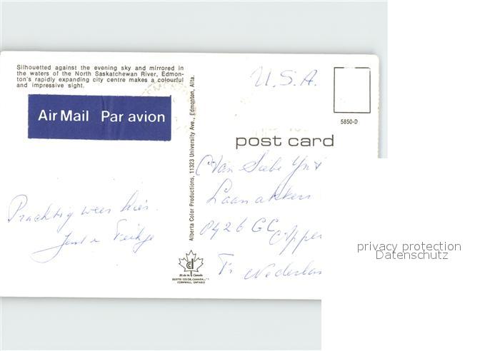 old postcard Edmonton Alberta postalisch gelaufen Erhaltung siehe scans