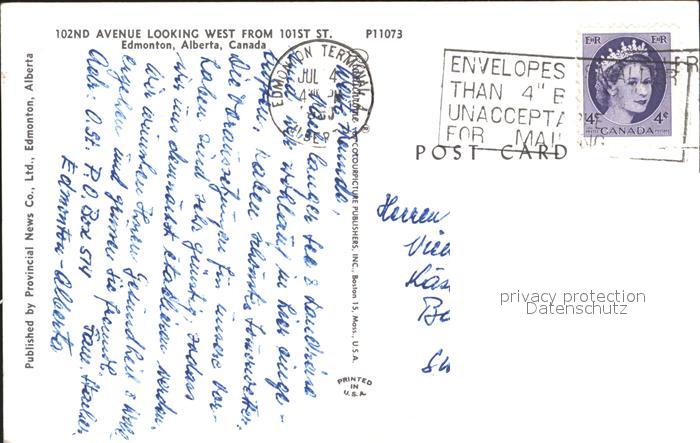 old postcard Edmonton Alberta Avenue looking west postalisch gelaufen Erhaltung siehe scans
