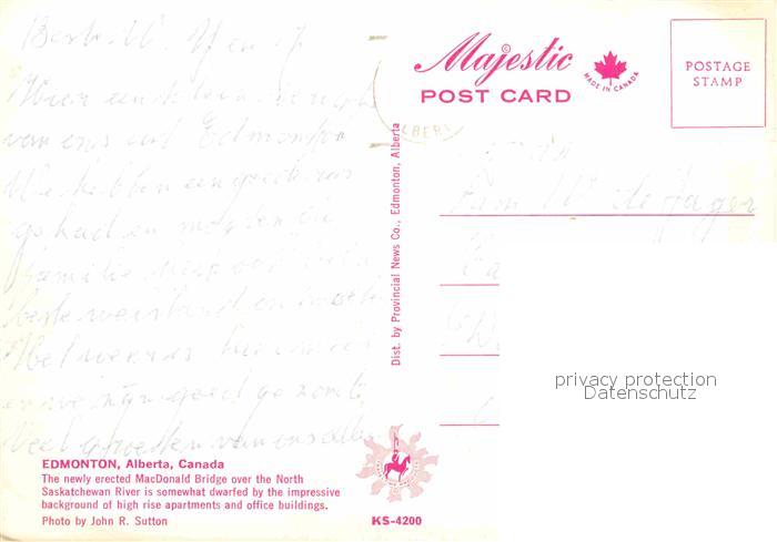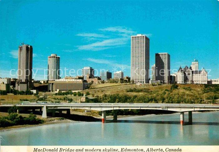 old postcard Edmonton Alberta MacDonald Bridge Saskatchewan River and modern skyline postalisch gelaufen Erhaltung siehe scans [FriedD77]