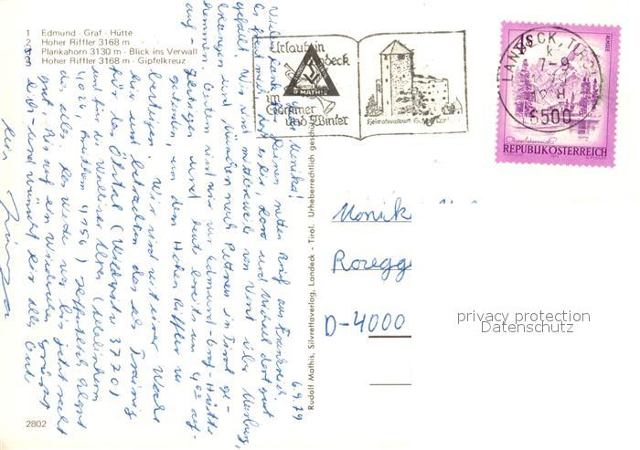 73167033 alte Postkarte Edmund Grafhuette Hoher Ritter Gipfelkreuz Plankahorn Vierwallblick postalisch gelaufen Erhaltung siehe scans [WerneD78] KatCode: 11390334070616