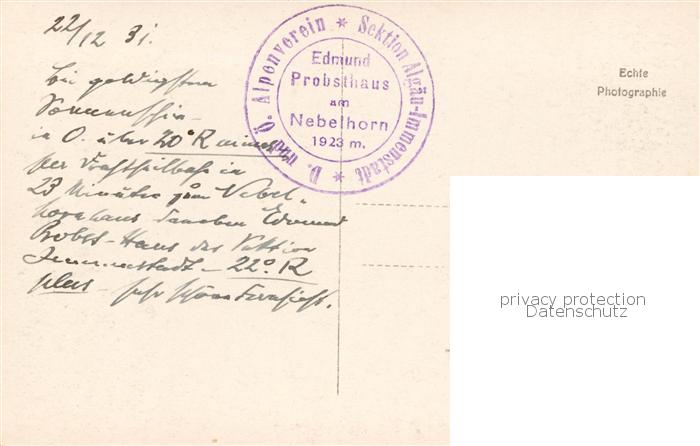 73818206 alte Postkarte Edmund-Probst-Haus 1923m Nebelhorn Oberstdorf am Nebelhorn postalisch gelaufen Erhaltung siehe scans [WerneD78] KatCode: 11110009780133