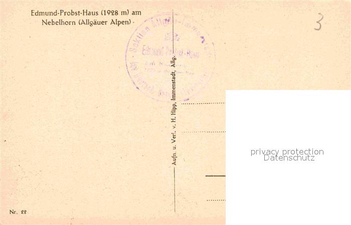 72822406 Edmund Probst Haus am Nebelhorn Gebirgspanorama Allgaeuer Alpen postalisch nicht gelaufen Erhaltung siehe scans [FriedD77] KatCode: 11110009780133