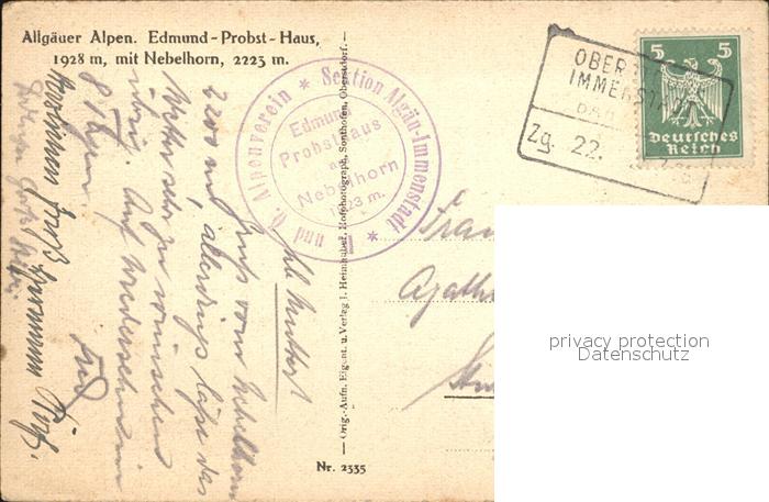 72477925 alte Postkarte Edmund Probst Haus mit Nebelhorn postalisch gelaufen Erhaltung siehe scans KatCode: 11110009780133