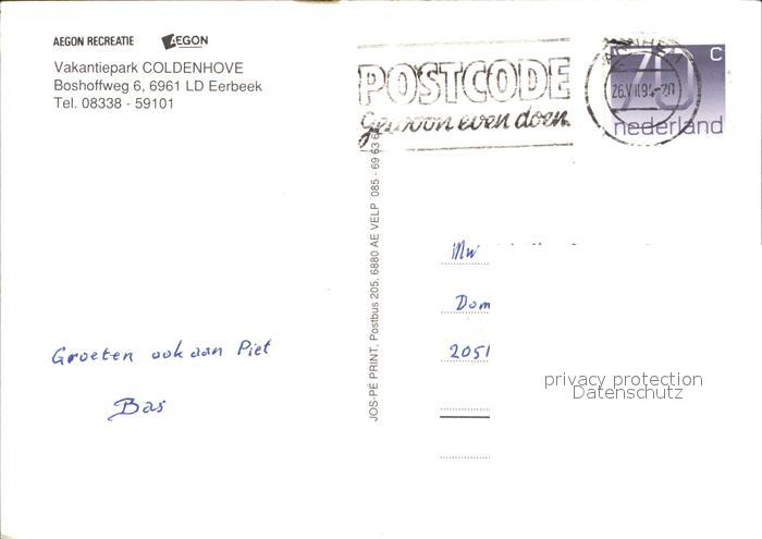 old postcard Eerbeek Vakantiepark Coldenhove postalisch gelaufen Erhaltung siehe scans