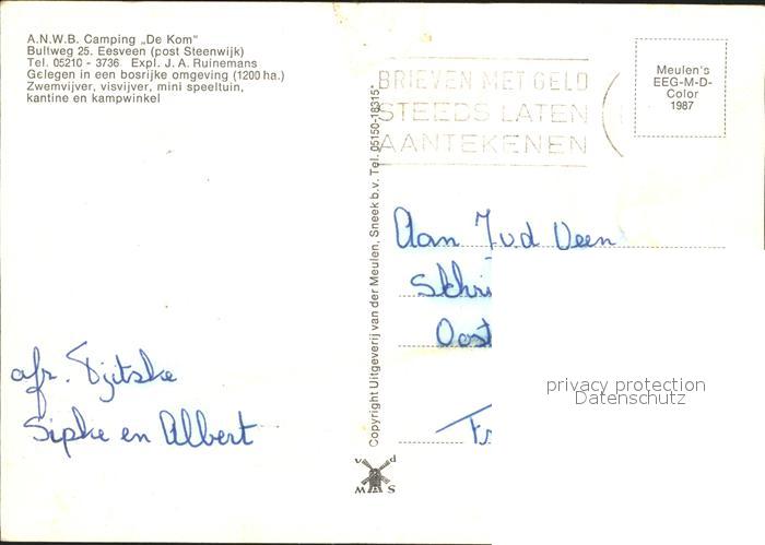 old postcard Eesveen Camping De Kom postalisch gelaufen Erhaltung siehe scans