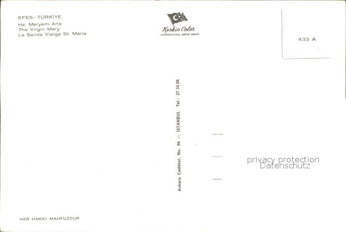 Efes La Sainte Vierge St Maria postalisch nicht gelaufen Erhaltung siehe scans