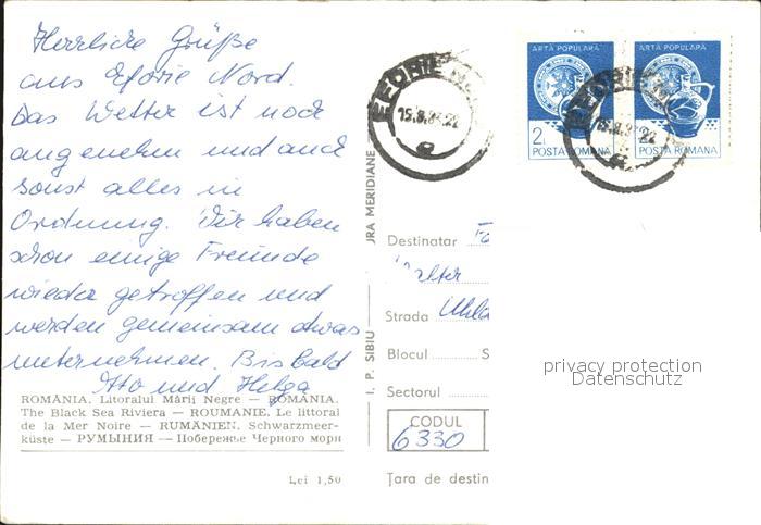 old postcard Eforie Badeort Schwarzmeerkueste Marii Negre postalisch gelaufen Erhaltung siehe scans