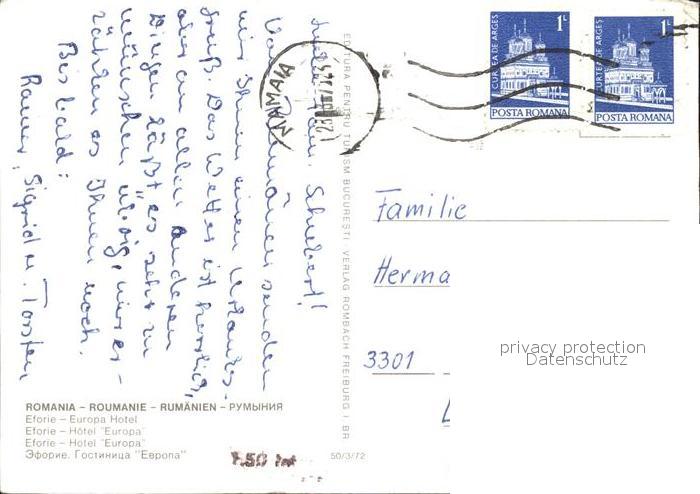 old postcard Eforie Nord Hotel Europa postalisch gelaufen Erhaltung siehe scans