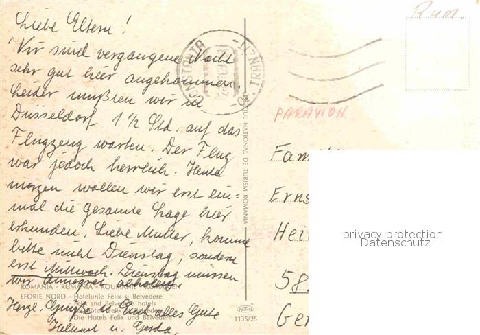 old postcard Eforie Nord Hotels Felix und Belvedere postalisch gelaufen Erhaltung siehe scans [WerneD78]
