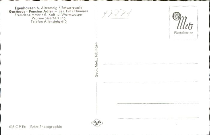 40754048 Egenhausen Wuerttemberg Gasthaus Pension Adler postalisch nicht gelaufen Alte Ansichtskarte Postkarte Katcode 11110008235022