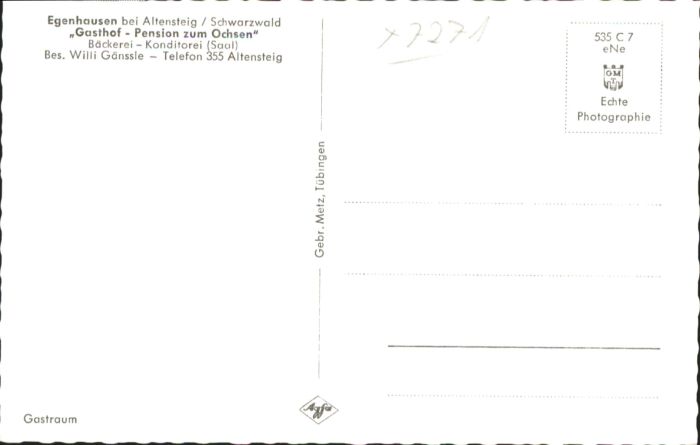 40754045 Egenhausen Wuerttemberg Gasthof Pension Ochsen postalisch nicht gelaufen Alte Ansichtskarte Postkarte Katcode 11110008235022