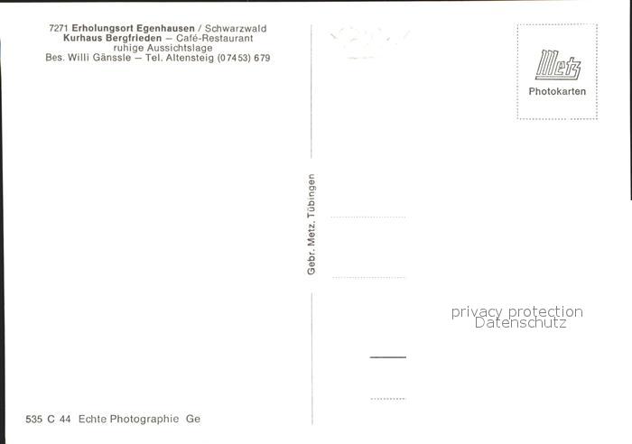 41768664 Egenhausen Wuerttemberg Kurhaus Bergfrieden Cafe Restaurant Erholungsort Schwarzwald postalisch nicht gelaufen Erhaltung siehe scans KatCode: 11110008235022