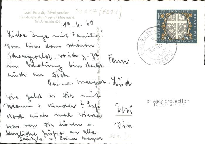 41593886 Egenhausen Wuerttemberg Luftaufnahme von der Privatpension Leni Reusch postalisch gelaufen Erhaltung siehe scans Alte Ansichtskarte Postkarte alte Postkarte Bert Katcode 11110008235022