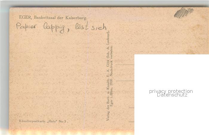 Eger Cheb Tschechien Bankettsaal der Kaiserburg Ruine Kuenstlerkarte Helo No 3 postalisch nicht gelaufen Erhaltung siehe scans [FriedD77]