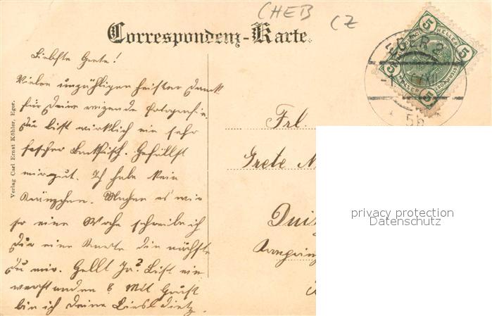 33708506 old postcard Eger Cheb Tschechien Egerthal Restauration Waldschloessl postalisch gelaufen Erhaltung siehe scans [WerneD78] KatCode: 11520