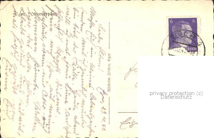 old postcard Eger Cheb Tschechien Obertorplatz postalisch gelaufen Erhaltung siehe scans