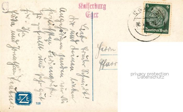 old postcard Eger Cheb Tschechien Stadtbild mit Kirche postalisch gelaufen Erhaltung siehe scans [FriedD77]