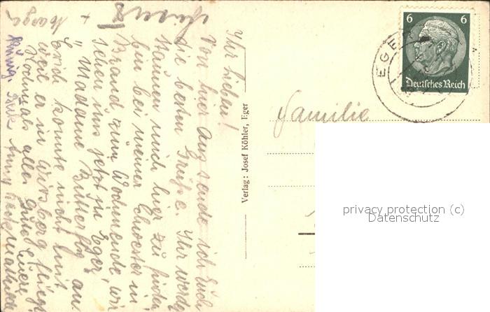 old postcard Eger Cheb Tschechien Stadttheater postalisch gelaufen Erhaltung siehe scans