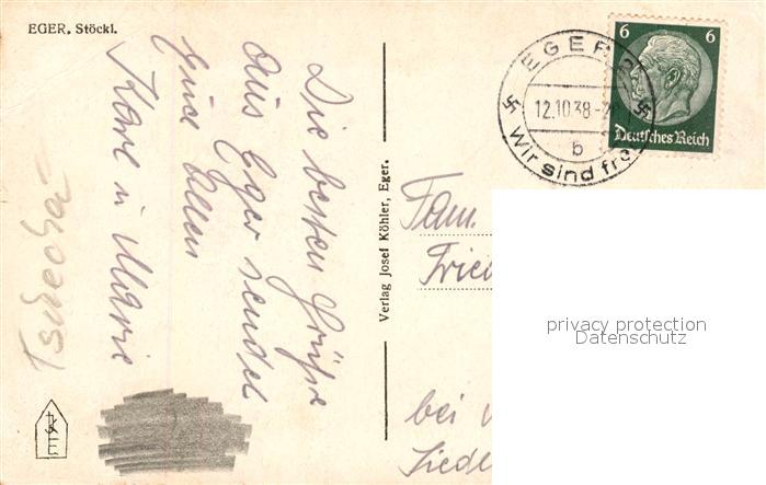 old postcard Eger Cheb Tschechien Stoeckl postalisch gelaufen Erhaltung siehe scans [FriedD77]
