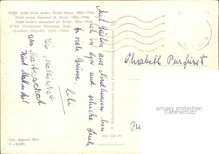 old postcard Eger Ungarn Dobo Istvans Denkmal postalisch gelaufen Erhaltung siehe scans