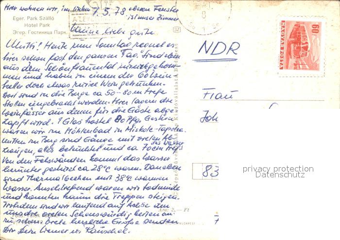 old postcard Eger Ungarn Hotel Park postalisch gelaufen Erhaltung siehe scans