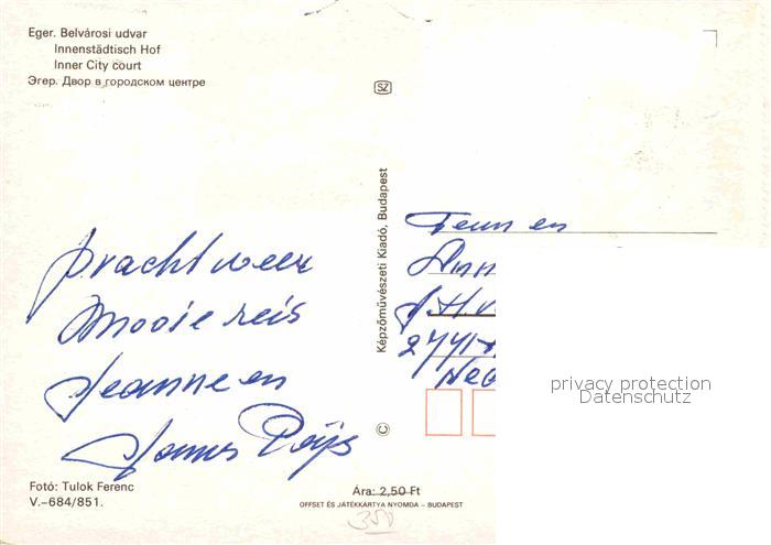 old postcard Eger Ungarn Innenstaedtischer Hof postalisch gelaufen Erhaltung siehe scans [LiesaD40]