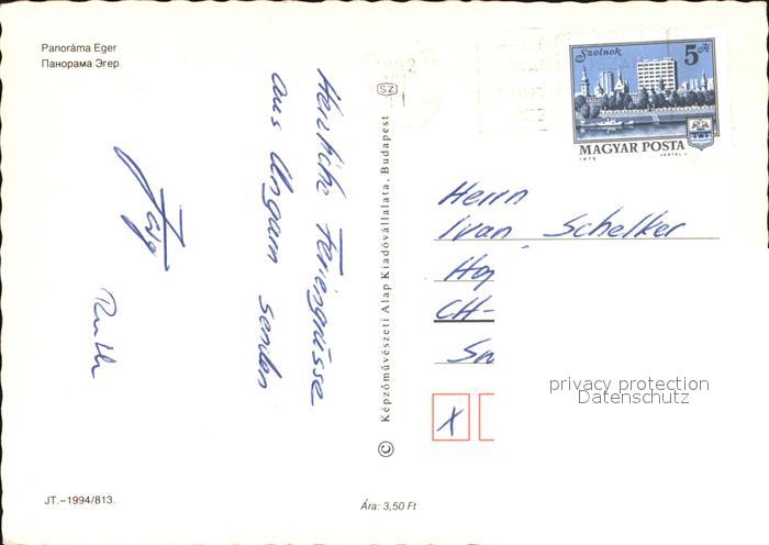 old postcard Eger Ungarn Kathedrale Denkmal Hotel Restaurant postalisch gelaufen Erhaltung siehe scans [FriedD77]