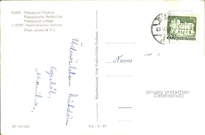 old postcard Eger Ungarn Pedagogiai Foeiskola Paedagogische Hochschule postalisch gelaufen Erhaltung siehe scans