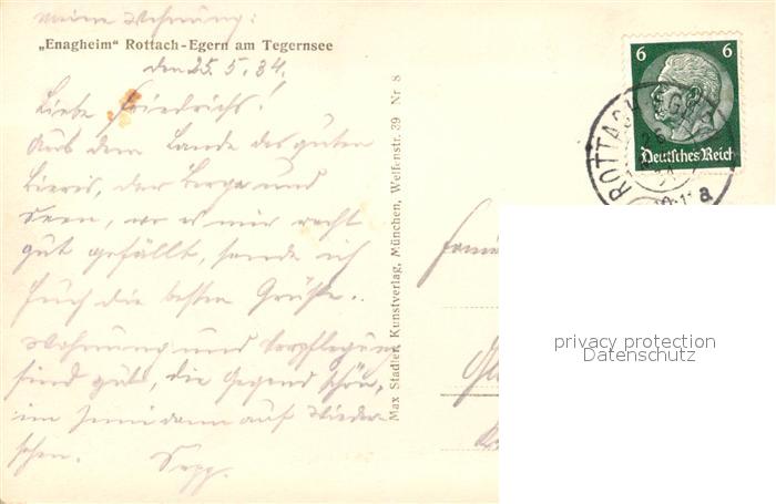 43189084 alte Postkarte Egern Tegernsee Enagheim postalisch gelaufen Erhaltung siehe scans [FriedD77] KatCode: 11110009182129