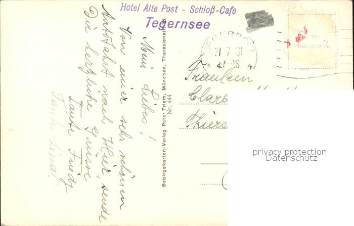 71936591 alte Postkarte Egern Tegernsee Hotel Alte Post Schloss-Cafe See postalisch gelaufen Erhaltung siehe scans KatCode: 11110009182129