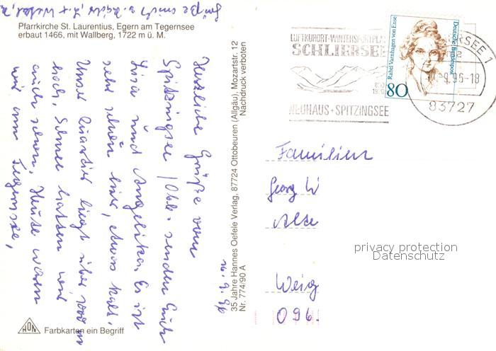 73012082 alte Postkarte Egern Tegernsee Pfarrkirche St Laurentius mit Wallberg postalisch gelaufen Erhaltung siehe scans [WerneD78] KatCode: 11110009182129