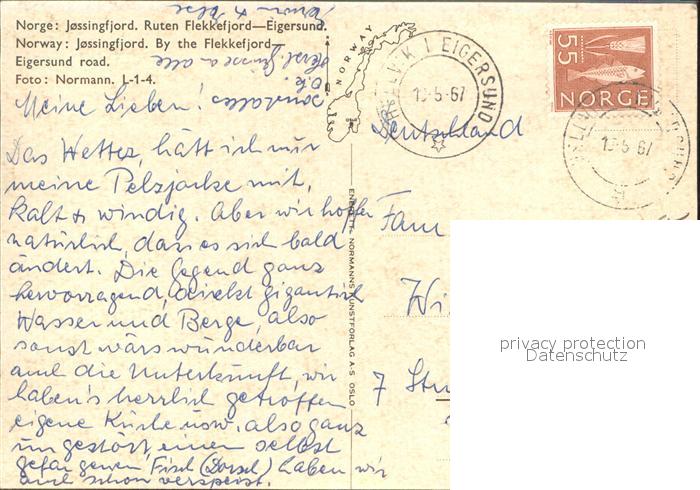 old postcard Egersund Jossingfjord Ruten Flekkefjord Eigersund postalisch gelaufen Erhaltung siehe scans