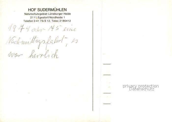 73725927 Egestorf Nordheide Hof Sudermuehlen Reiterhof Ausritt Hallenbad Naturschutzgebiet Lueneburger Heide postalisch nicht gelaufen Erhaltung siehe scans [FriedD77] KatCode: 11110003353009