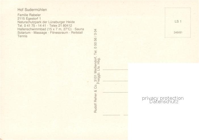 73667289 Egestorf Nordheide Hotel Hof Sudermuehlen Fliegeraufnahme postalisch nicht gelaufen Erhaltung siehe scans [FriedD77] KatCode: 11110003353009