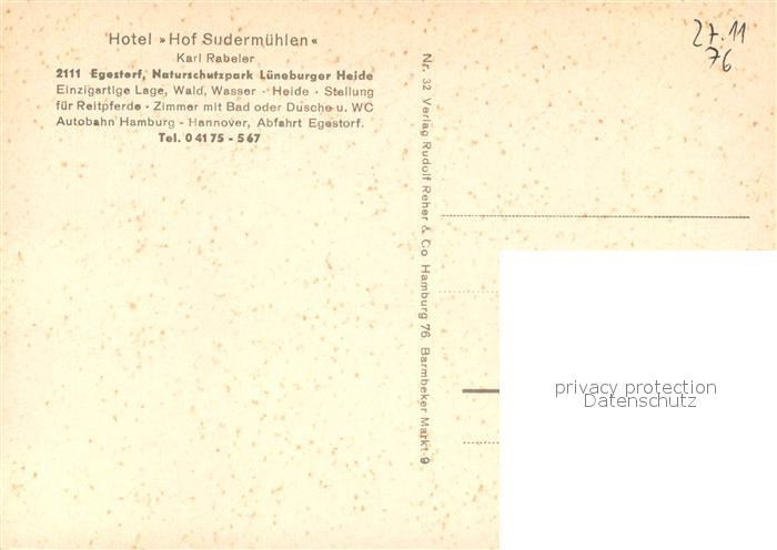 73608952 Egestorf Nordheide Hotel Hof Sudermuehlen postalisch nicht gelaufen Erhaltung siehe scans [WerneD78] KatCode: 11110003353009