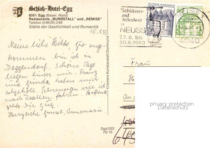 72768020 alte Postkarte Egg Bernried Schloss Hotel Egg Restaurants Burgstall und Remise postalisch gelaufen Erhaltung siehe scans [WerneD78] KatCode: 11110009271116