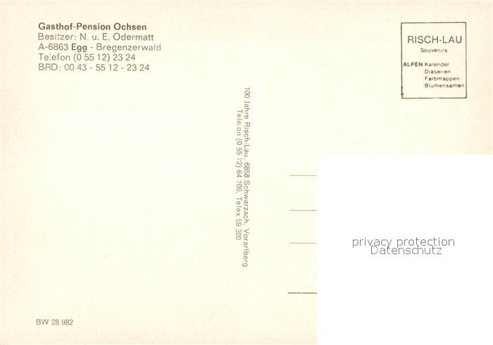 73586974 Egg Bregenzerwald Gasthof-Pension Ochsen postalisch nicht gelaufen Erhaltung siehe scans [PaolaD17] KatCode: 11390341080211