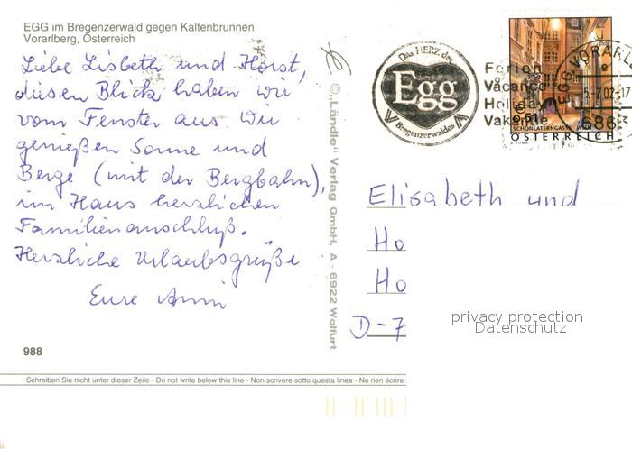 72974288 alte Postkarte Egg Bregenzerwald gegen Kaltenbrunnen postalisch gelaufen Erhaltung siehe scans [LiesaD40] KatCode: 11390341080211