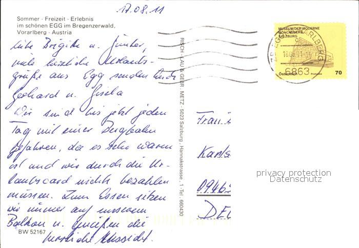 72396548 alte Postkarte Egg Bregenzerwald Vorarlberg Ortsansicht Kirche postalisch gelaufen Erhaltung siehe scans KatCode: 11390341080211