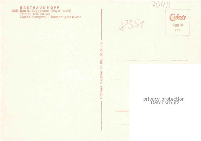 74043545 Egg Deggendorf Donau Bayerischer Wald Bayern Gasthaus Hopf Gastraum Terrasse postalisch nicht gelaufen Erhaltung siehe scans [FriedD77] KatCode: 11110009271119