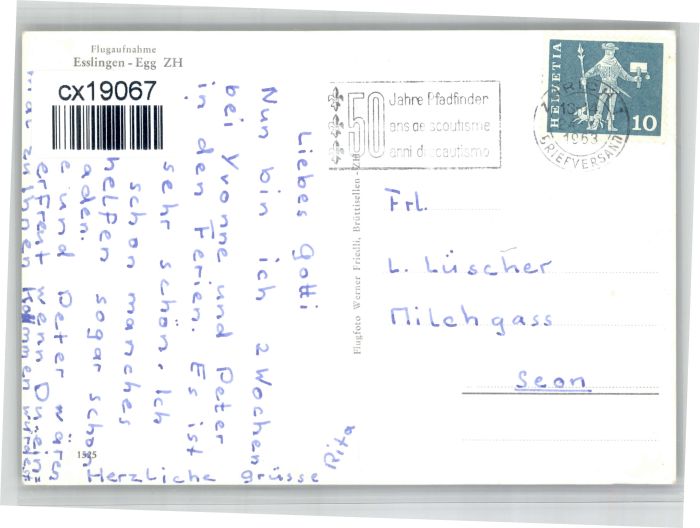 30724422 alte Postkarte Egg Esslingen USTER ZH Fliegeraufnahme postalisch gelaufen KatCode: 11470260905448