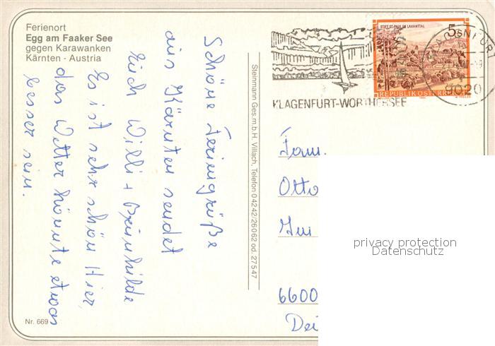 73751891 alte Postkarte Egg Faakersee Fliegeraufnahme mit den Karawanken postalisch gelaufen Erhaltung siehe scans [WerneD78] KatCode: 11390