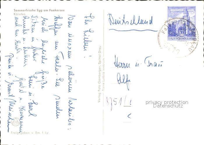71952972 alte Postkarte Egg Faakersee Fliegeraufnahme mit See postalisch gelaufen Erhaltung siehe scans KatCode: 11390