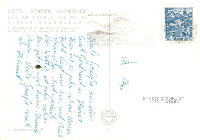 73173734 alte Postkarte Egg Faakersee Hotel Pension Karnerhof postalisch gelaufen Erhaltung siehe scans [LiesaD40] KatCode: 11390