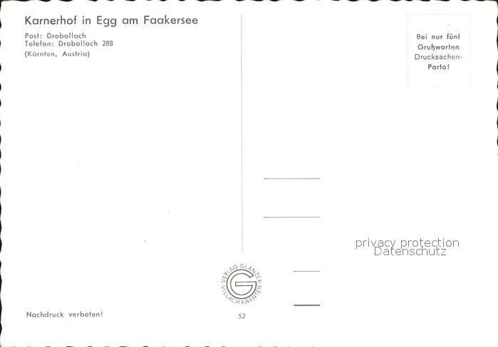 72480897 Egg Faakersee Karnerhof Bildstock Seepanorama postalisch nicht gelaufen Erhaltung siehe scans KatCode: 11390