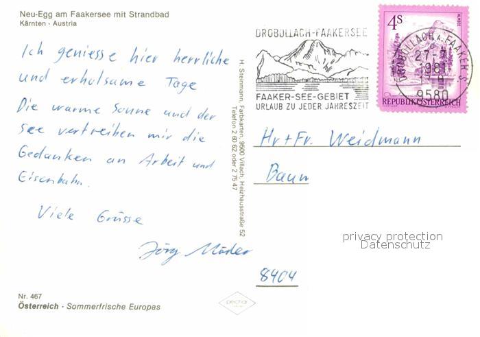 42621187 alte Postkarte Egg Faakersee mit Strandbad postalisch gelaufen Erhaltung siehe scans [WerneD78] KatCode: 11390